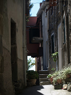 Corniglia esta a unos cien metros de altura sobre el mar, para subir al pueblo, o recorres la carretera desde la estación o te subes treinta y tres tramos de escalera que suman 377 escalones.